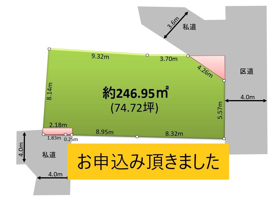 北東側 3.9m 公道・北側3.1~3.6m私道・南西側4.0m私道・北側4.0m(持分通行承諾兼)