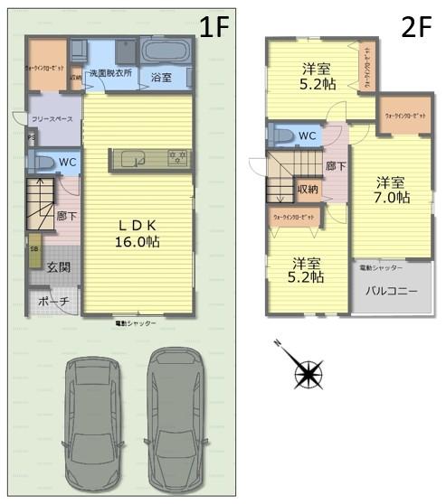 | 設備 | B・T別 追焚機能 浴室暖房 浴室乾燥機 浴室に窓あり トイレ トイレ2ヶ所 温水洗浄便座 洗面台 洗面所独立 ガスコンロ付 3口以上コンロ システムキッチン 収納スペース 全居室収納 ウォークインクローゼット シューズボックス 室内洗濯機置場 全居室エアコン バルコニー 駐車場2台分 | ||